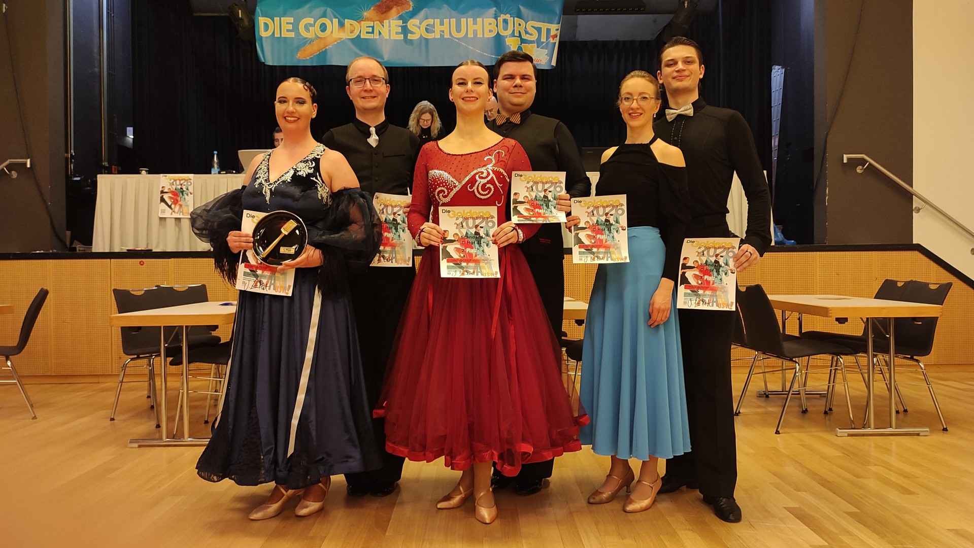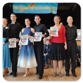 Auch in diesem Jahr konnten die Siegerpaare wieder den wie üblich individuell gestalteten Pokal der GOLDENEN SCHUHBÜRSTE in Empfang nehmen. Die Bürste, die ja das Kernstück des Pokals ist, wurde uns in diesem Jahr vom Tanzsportlädchen in Weiterstadt gestiftet. Dafür herzlichen Dank!