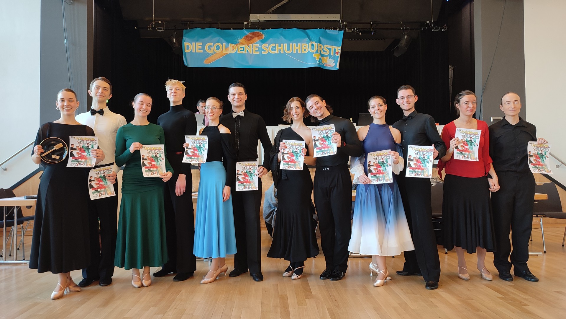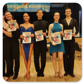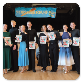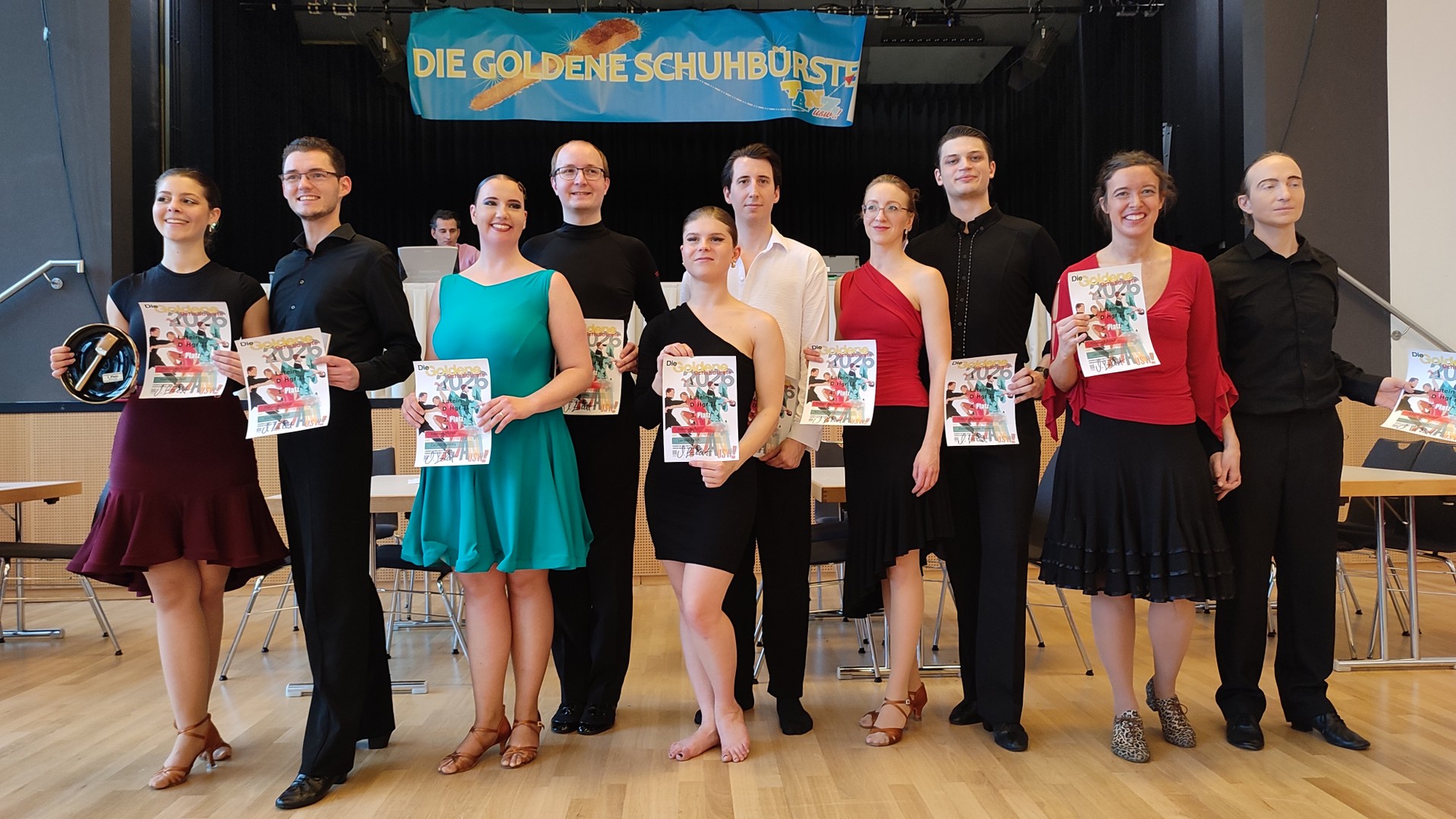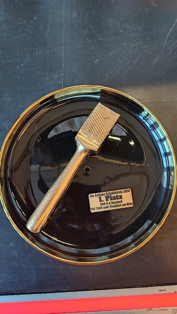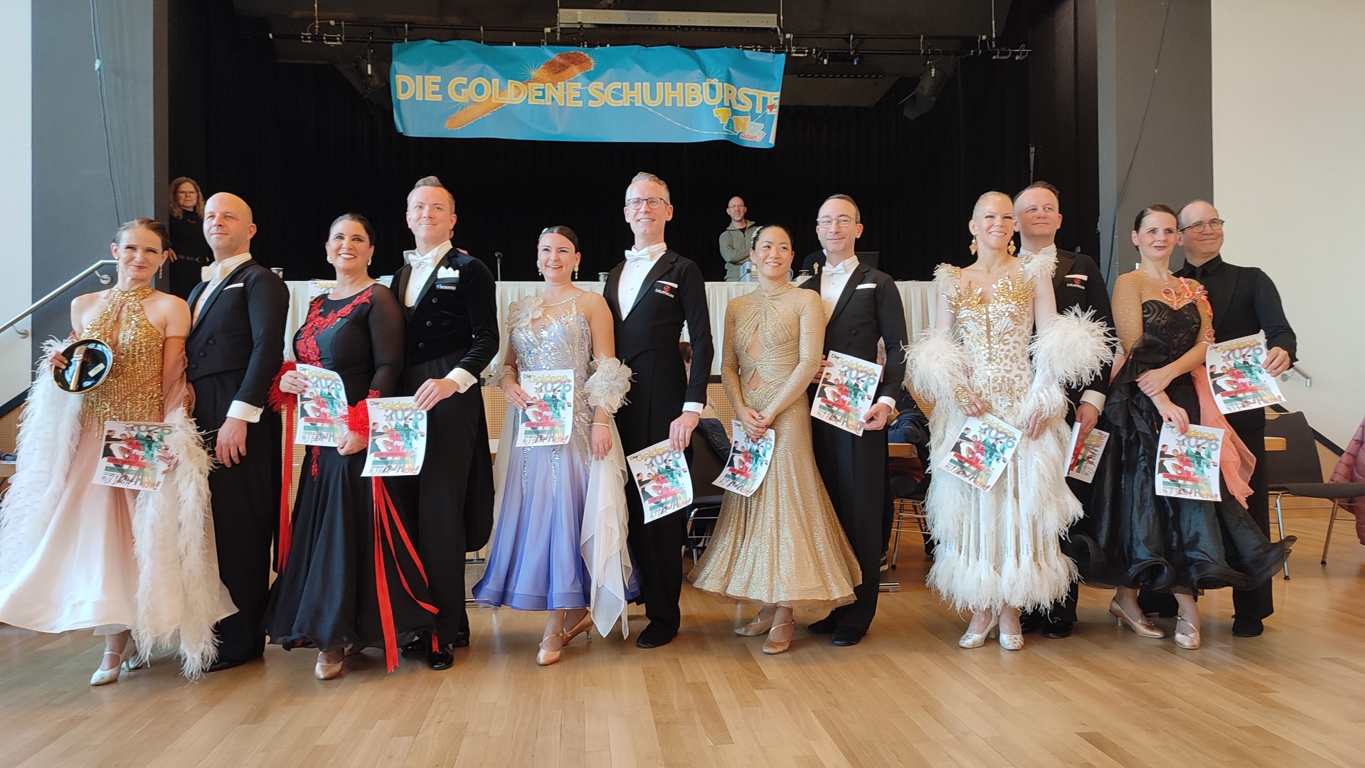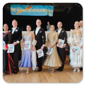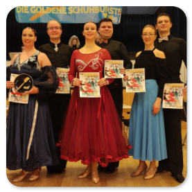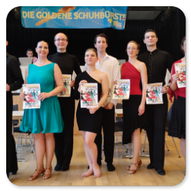 Auch in diesem Jahr konnten die Siegerpaare wieder den wie üblich individuell gestalteten Pokal der GOLDENEN SCHUHBÜRSTE in Empfang nehmen. Die Bürste, die ja das Kernstück des Pokals ist, wurde uns in diesem Jahr vom Tanzsportlädchen in Weiterstadt gestiftet. Dafür herzlichen Dank!