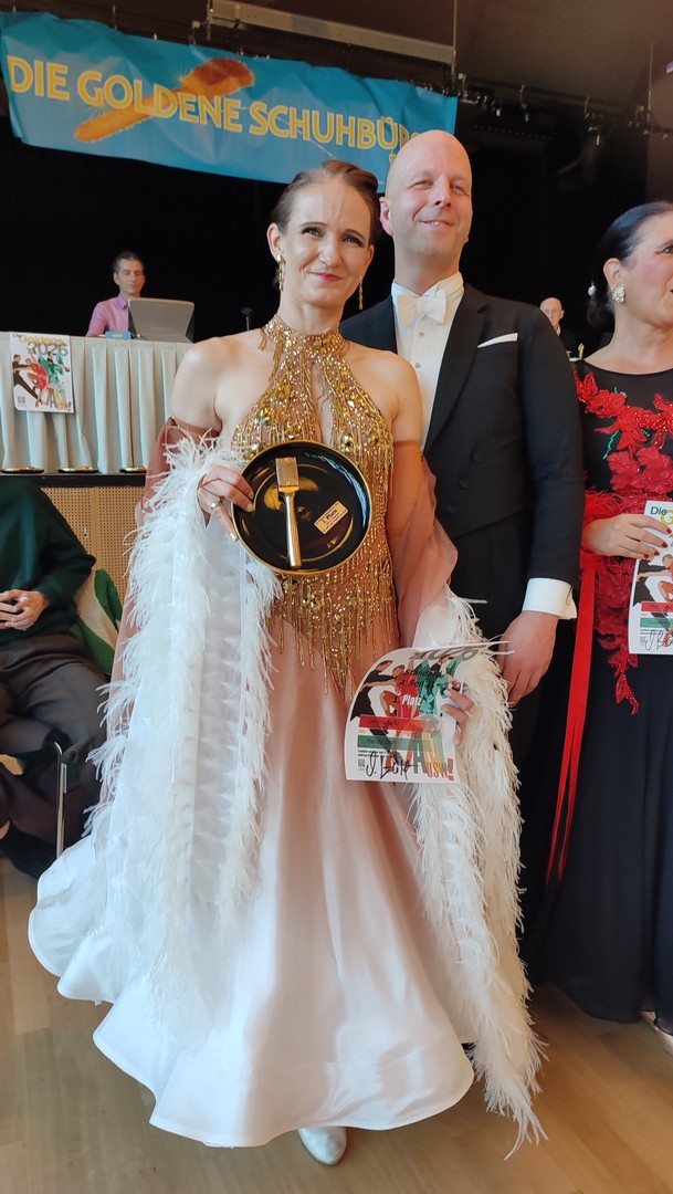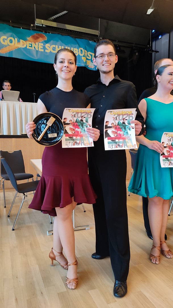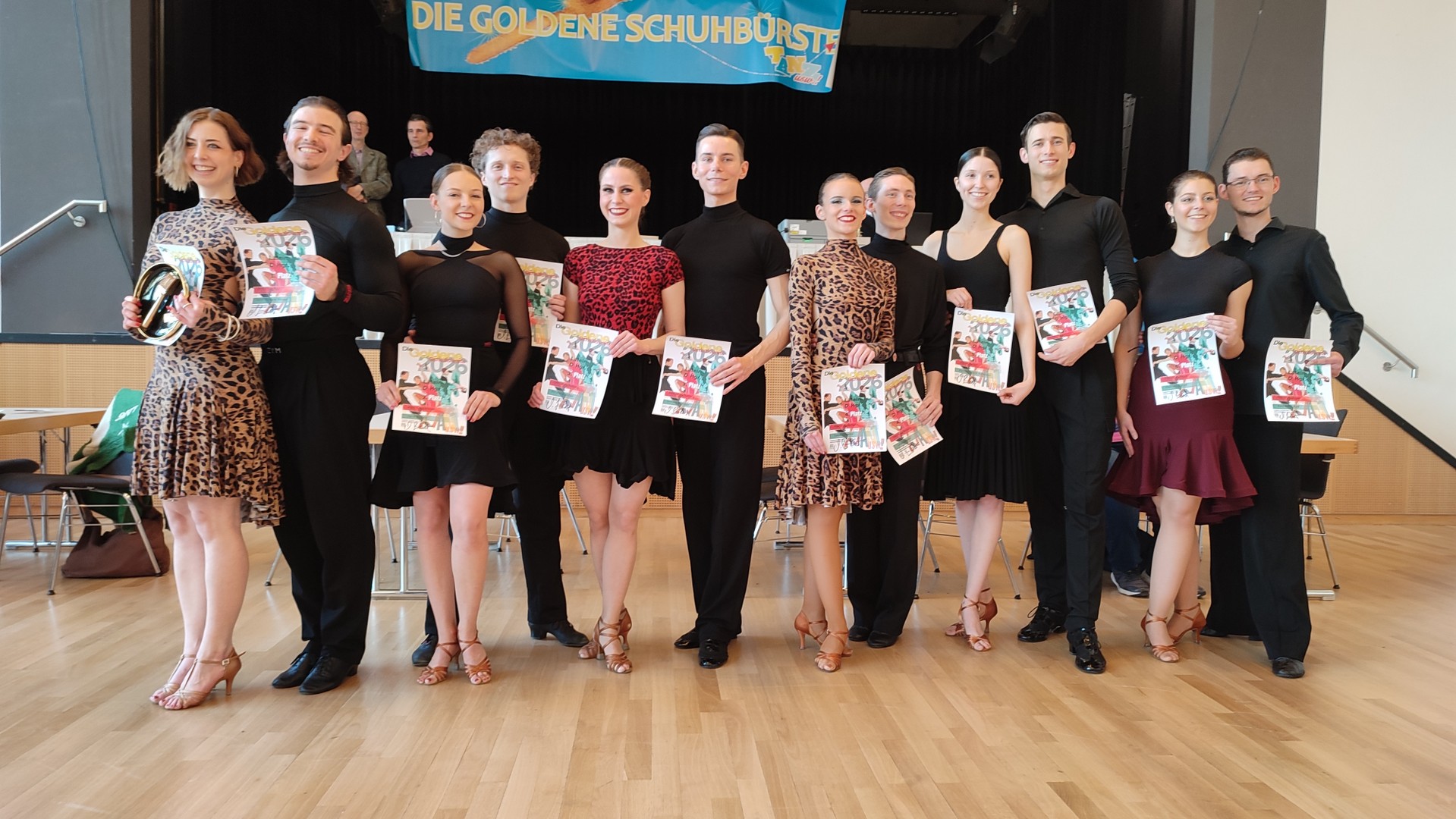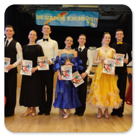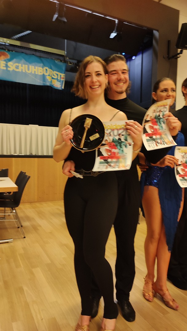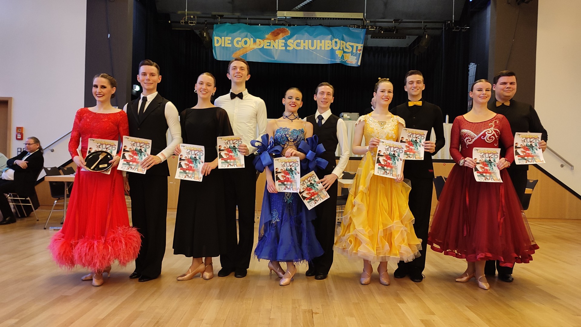 Auch in diesem Jahr konnten die Siegerpaare wieder den wie üblich individuell gestalteten Pokal der GOLDENEN SCHUHBÜRSTE in Empfang nehmen. Die Bürste, die ja das Kernstück des Pokals ist, wurde uns in diesem Jahr vom Tanzsportlädchen in Weiterstadt gestiftet. Dafür herzlichen Dank!